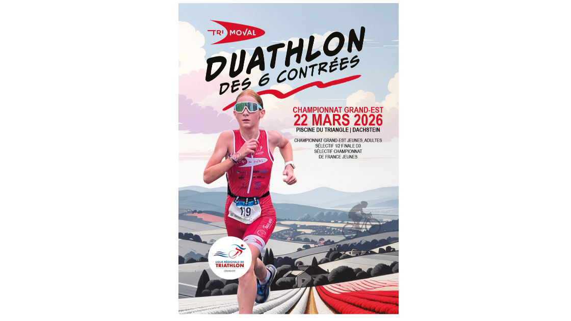 Le Duathlon des 6 Contrées, organisé par le Trimoval, aura lieu le 22 mars 2026 à Dachstein. Il sera cette année support des championnats grand est jeunes et adultes et sélectif pour la 1/2 finale D3 !